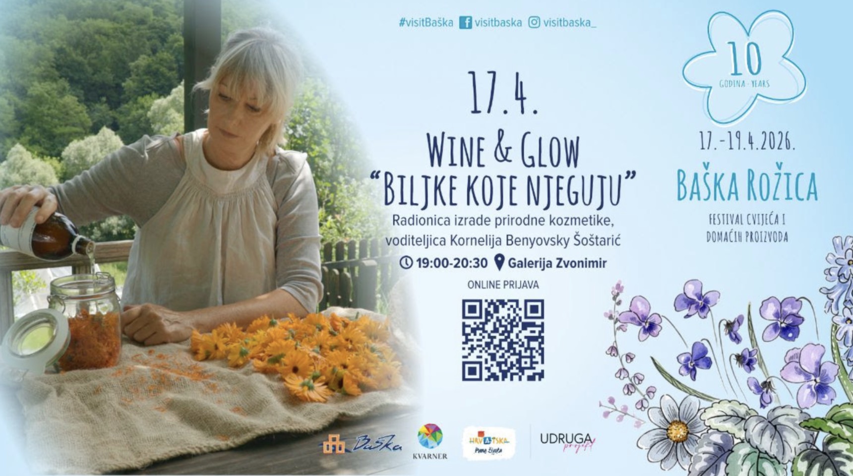 Baška rožica već deset godina njeguje ono najvrijednije, povezanost s prirodom, kreativnost koja spaja ljude i osjećaj zajedništva koji ostaje dugo nakon što se festival završi. Jubilarno izdanje prilika je da zajedno proslavimo sve ono što je kroz godine izraslo, iz male ideje u veliki proljetni doživljaj, koji zajednički organiziraju Turistička zajednica općine Baška i Udruga Projekt.