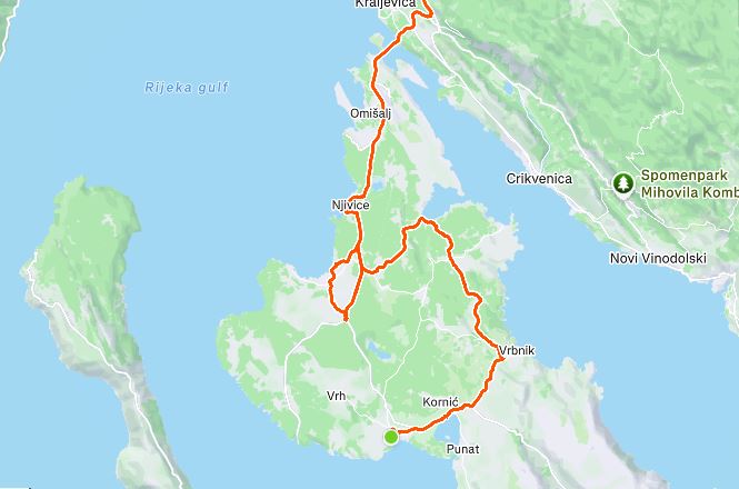 Riva (Obala hrvatske mornarice) (Grad Krk) – Stjepana Radića – 5131 Ulica narodnog preporoda – D102 – 5183 – 5108 – 58071 – 58071 (Risika) – 58069 – 58119 (Soline) – 58067 – 5087 (Rasopasno) – D102 – ŽC 5087 – D 102 – ŽC 5086 – NC Dubašljanska (Malinska) – ŽC 5086 – LC 58089 – Sveti Ivan – LC 58070 – D 104 – D102 – 5084 Kralja Tomislava (Njivice) – 5084 Primorska cesta – D102 Krčki most – A7 Kvarnerska autocesta – 5215 Rijeka (Rujevica) – 5025 (Marinići) – 5025 (Viškovo) – 5021 – 5206 (Kastav) – 5019 – D8 (Jušići) – 58016 Rukavac (Matulji) – NC Rukavac – ŽC 5047 Veprinac – 5047 (Veprinac) – 5047 (Poklon) – D500 (Vranja) – D64 (Kršan) – ŽC 5081 – (Gorenji Kraj/Šumber) – LC50123 – LC50123 (Stepančići) – 5081 (Labin – Dubrova) – 5081 (Labin) – D66 Zelenice – D66 Pulska – ŽC 5103 (Labin) – 5081 Zelenice – 5081 Alda Negrija – Titov trg – Ulica Sveta Katarina – 5081 (groblje/Presika) – 5081 (Ravni) – NC (Skitača) – (Brovinje) – 5103 (Brovinje) – 5103 (Salakovci) – (Labin) – Zelenice – Alda Negrija – Titov trg (Labin) (CILJ)