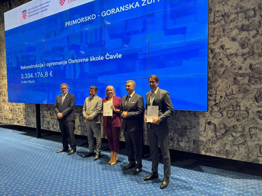 Za Primorsko-goransku županiju ugovore je preuzeo zamjenik župana Robert Matić, u pratnji načelnice Općine Čavle Ivane Cvitan Polić, i to za rekonstrukciju i opremanje Osnovne škole Čavle, vrijednu 3.154.172,64 eura, te za dogradnju jednodijelne školske sportske dvorane Osnovne škole Jurja Klovića u Triblju, vrijednu 1.036.808,75 eura