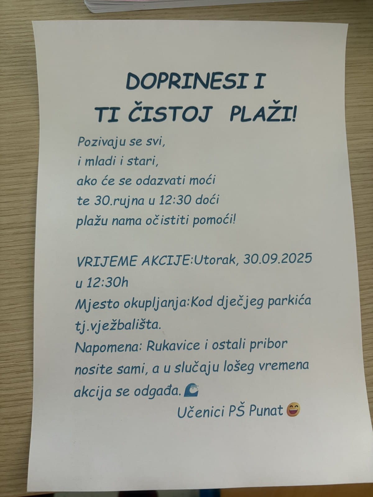 U sklopu ovogodišnje suradnje s Institutom MareMundi, učiteljice biologije i njemačkog jezika Područne škole Punat, zajedno su s učenicima 5., 7. i 8. razreda organizirale akciju čišćenja plaža u našem mjestu. To je tek prvi dio zajedničke suradnje koje je u planu za školsku godinu 2025./2026.