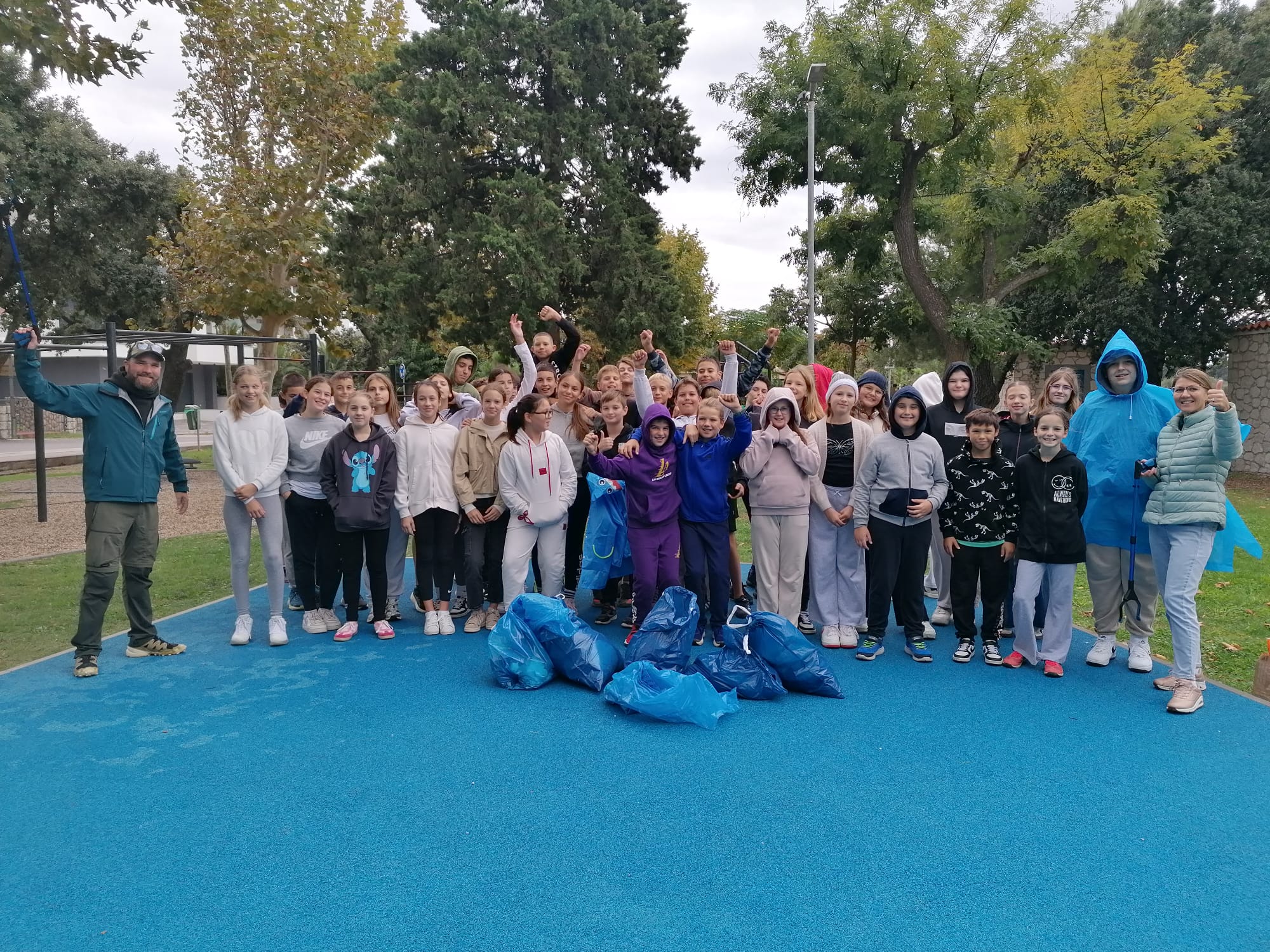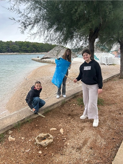 Ovim putem moramo zahvaliti gosp. Felixu Rossbachu iz Instituta koji nas je svojim kratkim predavanjem uveo u problematiku otpada koje najčešće završava u moru te motivirao za radnu akciju. Naoružani rukavicama, hvataljkama i vrećama u samo sat vremena prikupili smo najvećim dijelom plastični otpad i opuške.