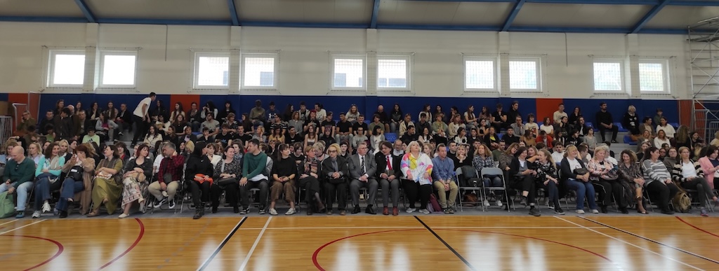 Svečanost je započela himnama i pozdravnim govorima ravnatelja Serđa Samblića, načelnika Tonija Juranića te predsjednice Državnog povjerenstva za provedbu državnog Natjecanja iz engleskoga jezika Danijele Ille. Kroz program su nas vodili učenici naše škole, podsjetivši sve prisutne na bogatu povijest našeg kraja i njegove prirodne ljepote.
