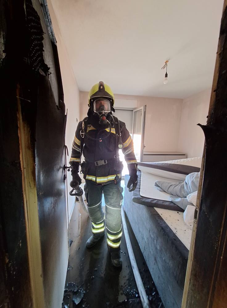 “Prva vozila dolaze na mjesto požara u manje od tri minute te zapažaju požar sobe na prvom katu iz koje izlazi dim i plamen. Gašenje započinjemo preko balkona, a zatim se u objekt ulazi s dodatnim mlazom radi potpunog zahvaćanja požarišta. Požar je brzo lokaliziran, nakon čega je uslijedila provjera cijelog objekta i izdimljavanje prostorija”, priopćili su krčki vatrogasci.