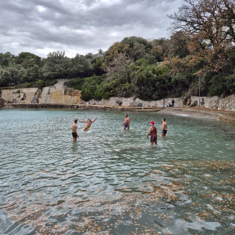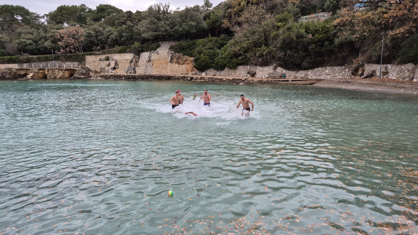 Na plaži Dražica u gradu Krku ove je srijede, devetu godinu za redom, održana “ledena” tradicija – hrabra ekipa je ponovo na Badnjak zaigrala picigin!