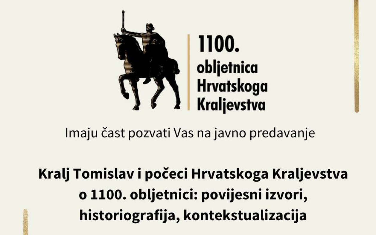 Javno predavanje: Kralj Tomislav i počeci Hrvatskoga Kraljevstva o 1100. obljetnici