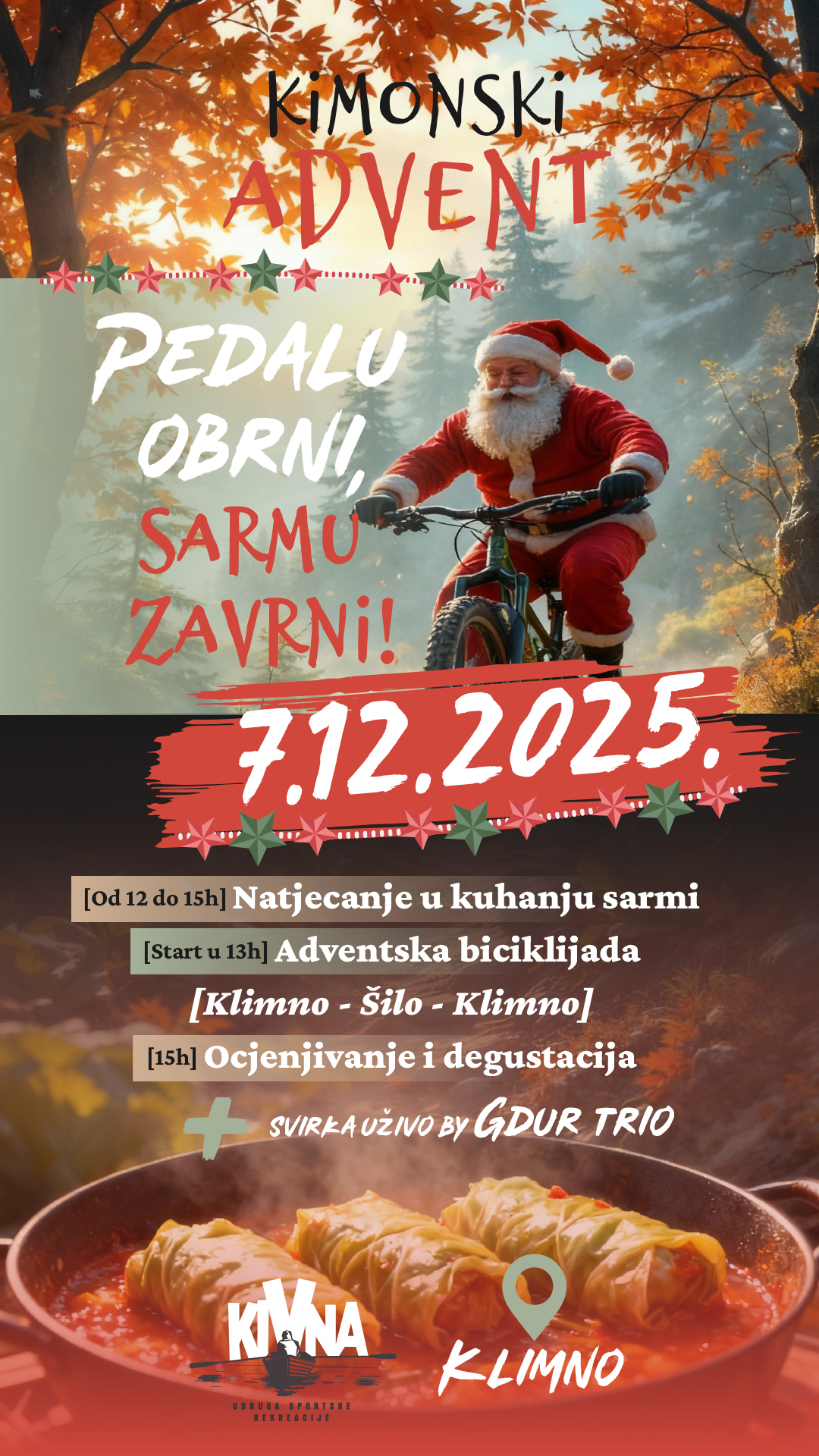 Ove nedjelje 07.12. u sklopu „Adventa va Dobrinju“ održava se Kimonski Advent: Pedalu obrni, sarmu zavrni!
