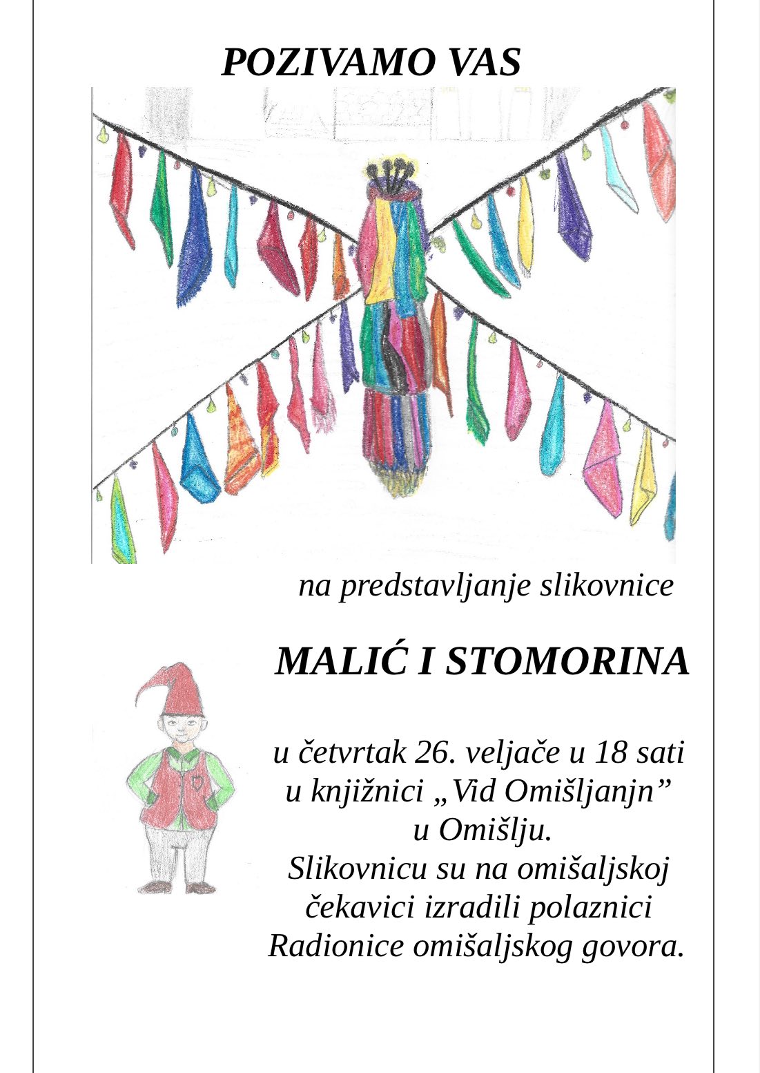 Prigodno, u četvrtak je predstavljanje krasne i duhovite slikovnice. Slikovnicu su na omišaljskoj čekavici izradili polaznici Radionice omišaljskog govora pod vodstvom prof. Dragice Vukušić.”