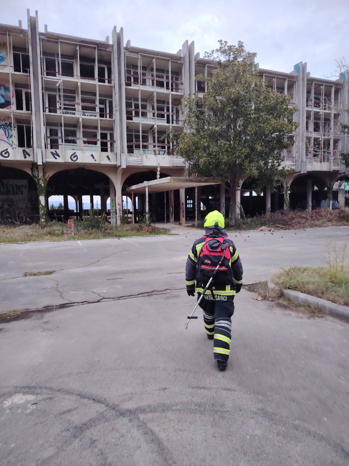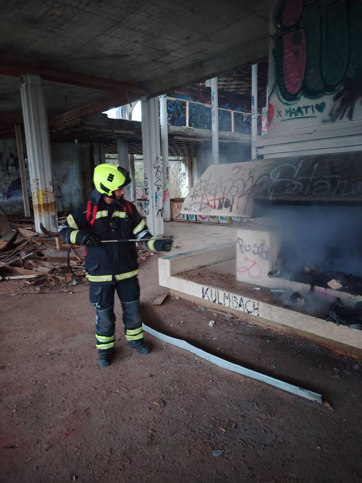 “Današnja intervencija u napuštenom hotelu Haludovo – gašenje neodgovornog i nepromišljenog paljenja. Podsjećamo građane da ne pale vatru unutar napuštenih objekata.