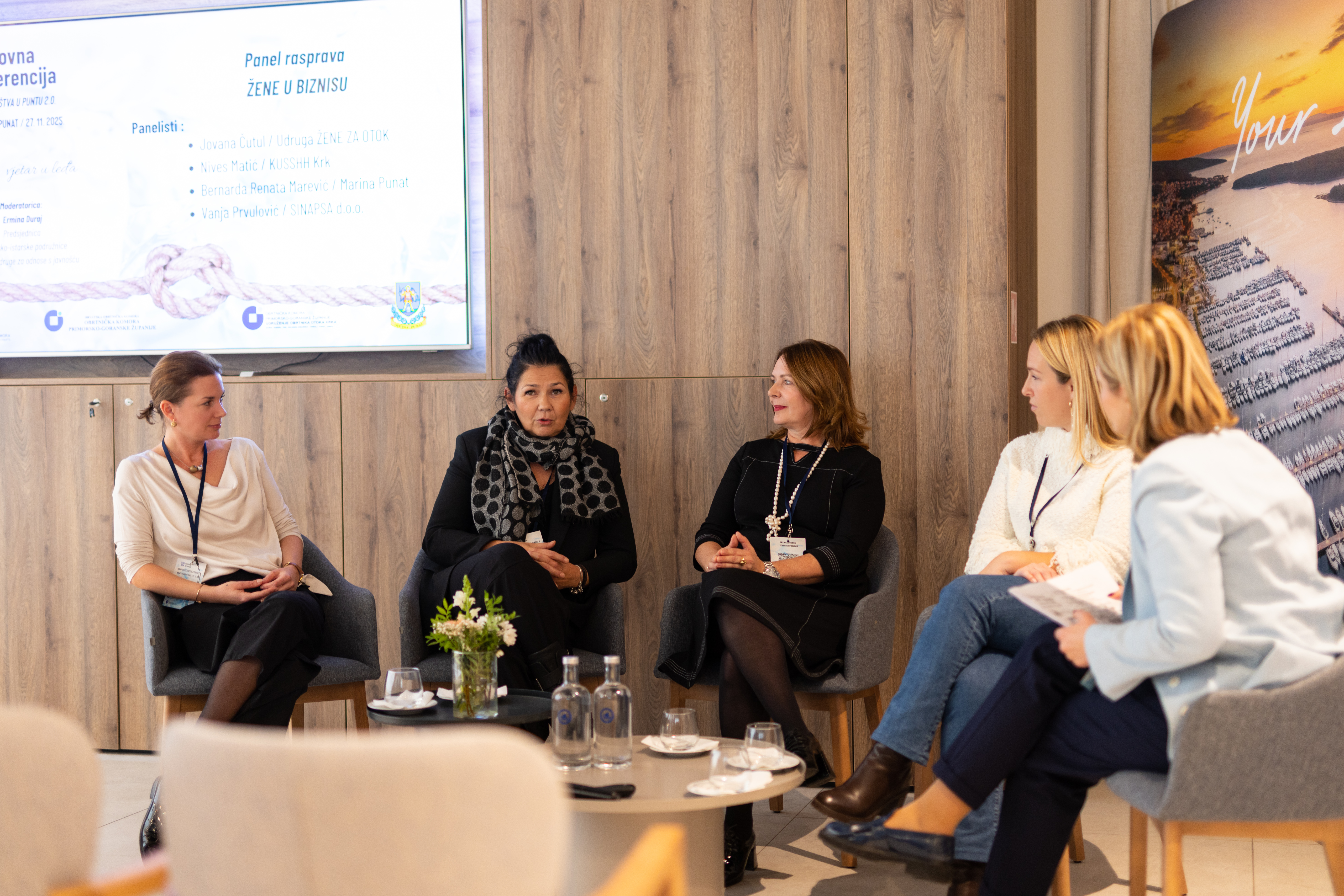 U panel raspravi ŽENE U BIZNISU poduzetnice Bernarda Renata Marević iz Marine Punat d.o.o., Vanja Prvulović iz Sinapsa d.o.o., Jovana Čutul iz Udruge ŽENE ZA OTOK te Ines Matić iz KUSSHH Krk progovorile su o svojem poduzetničkom putu, iskustvu kroz prizmu različitih djelatnosti i ulozi žena u poduzetništvu. Složno su zaključile da je za poslovni uspjeh ključna mreža podrške koju pruža obitelj, prijatelji, društvo, podrška koja omogućuje rast i razvoj, uz ambiciju i odvažnost mijenjati stvari.