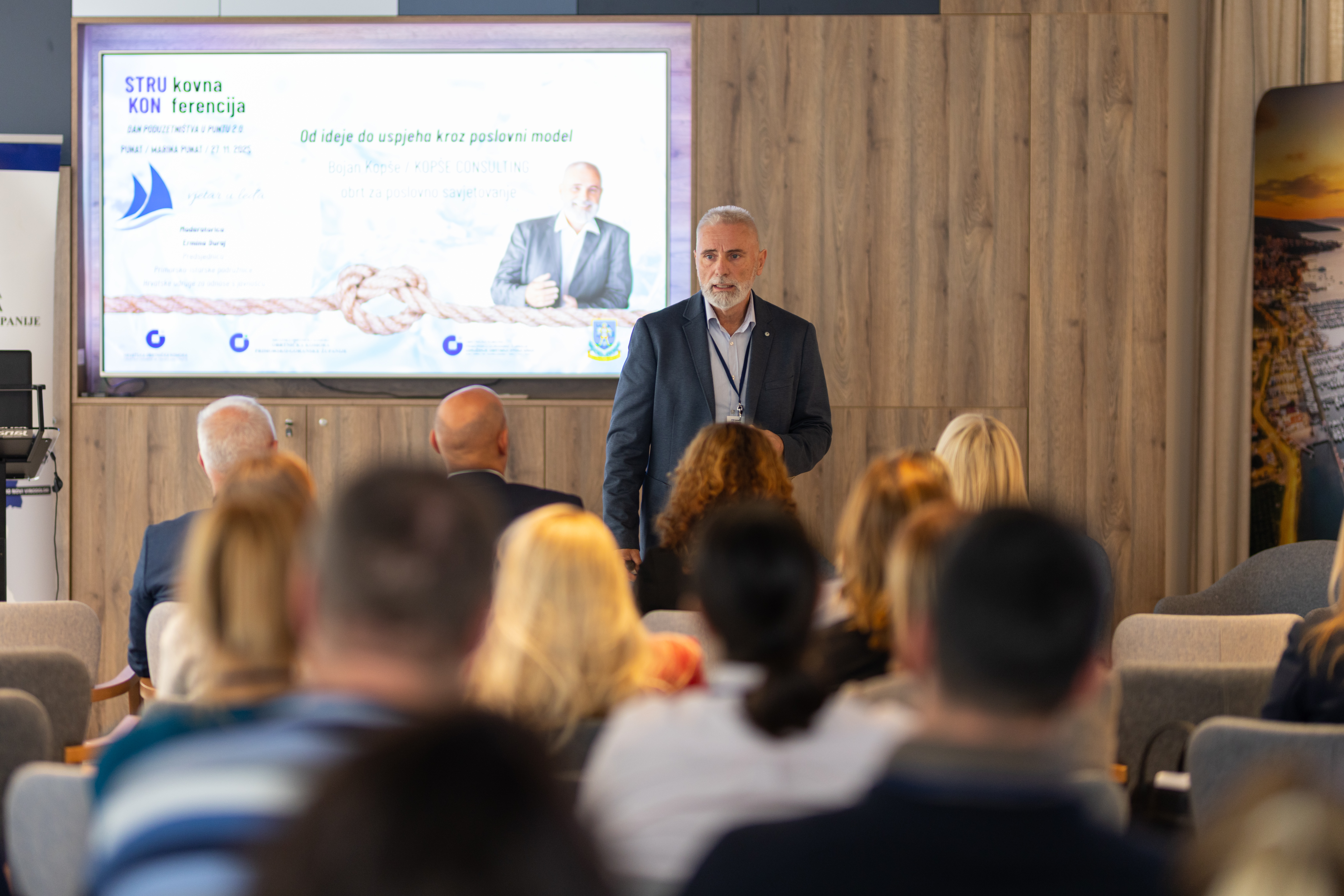 Bojan Kopše, vlastnik obrta KOPŠE Consulting, poslovno-procesni konzultant specijaliziran za unaprjeđenje poslovne učinkovitosti predstavio je pripremu poslovnog modela, neophodnog svakome tko tek kreće u poduzetničke vode, ali i za one koji već posluju, da preispitaju svoju poslovnu poziciju, uz strateško promišljanje i upravljanje.