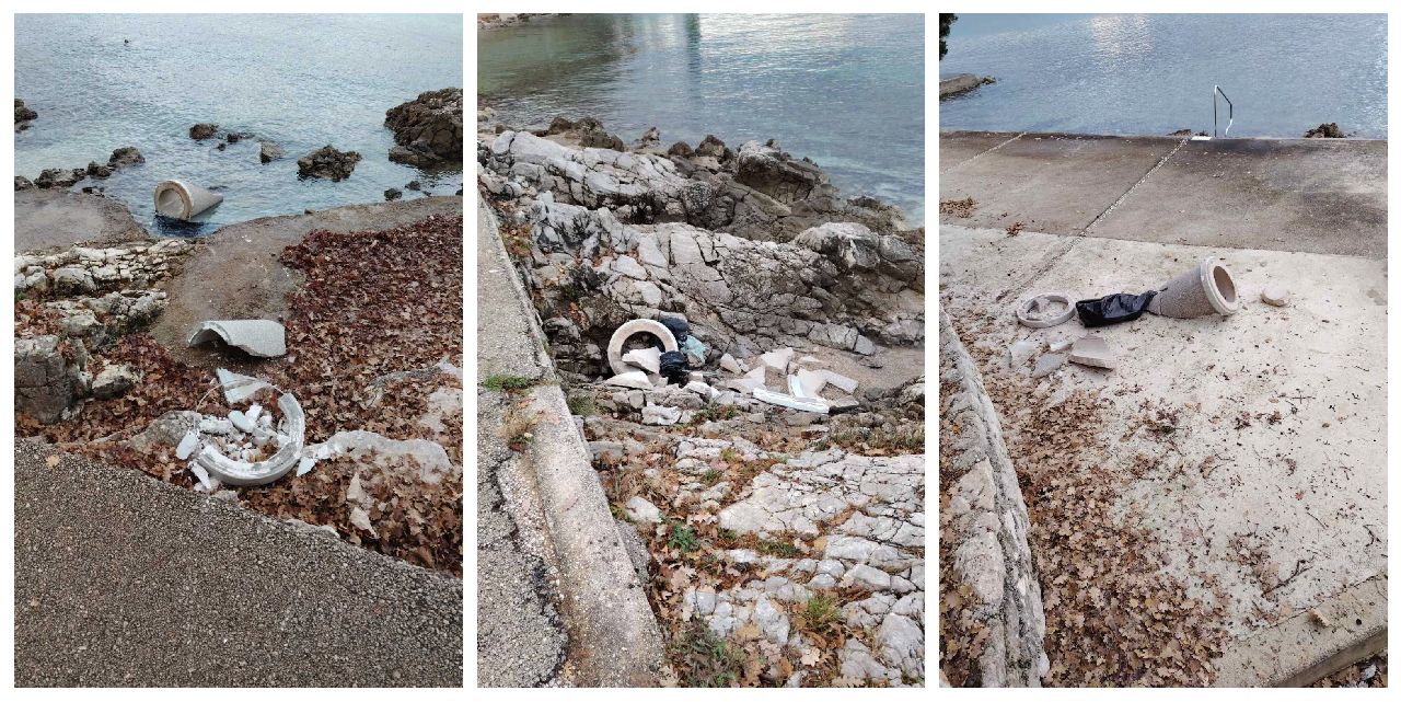 Osim što su na području šetnice ispod Haludova u Malinskoj vandali porazbijali barem osam betonskih posuda za otpad – a neke skupa sa smećem bacili u more – isti vandalizam dogodio se i u Njivicama.