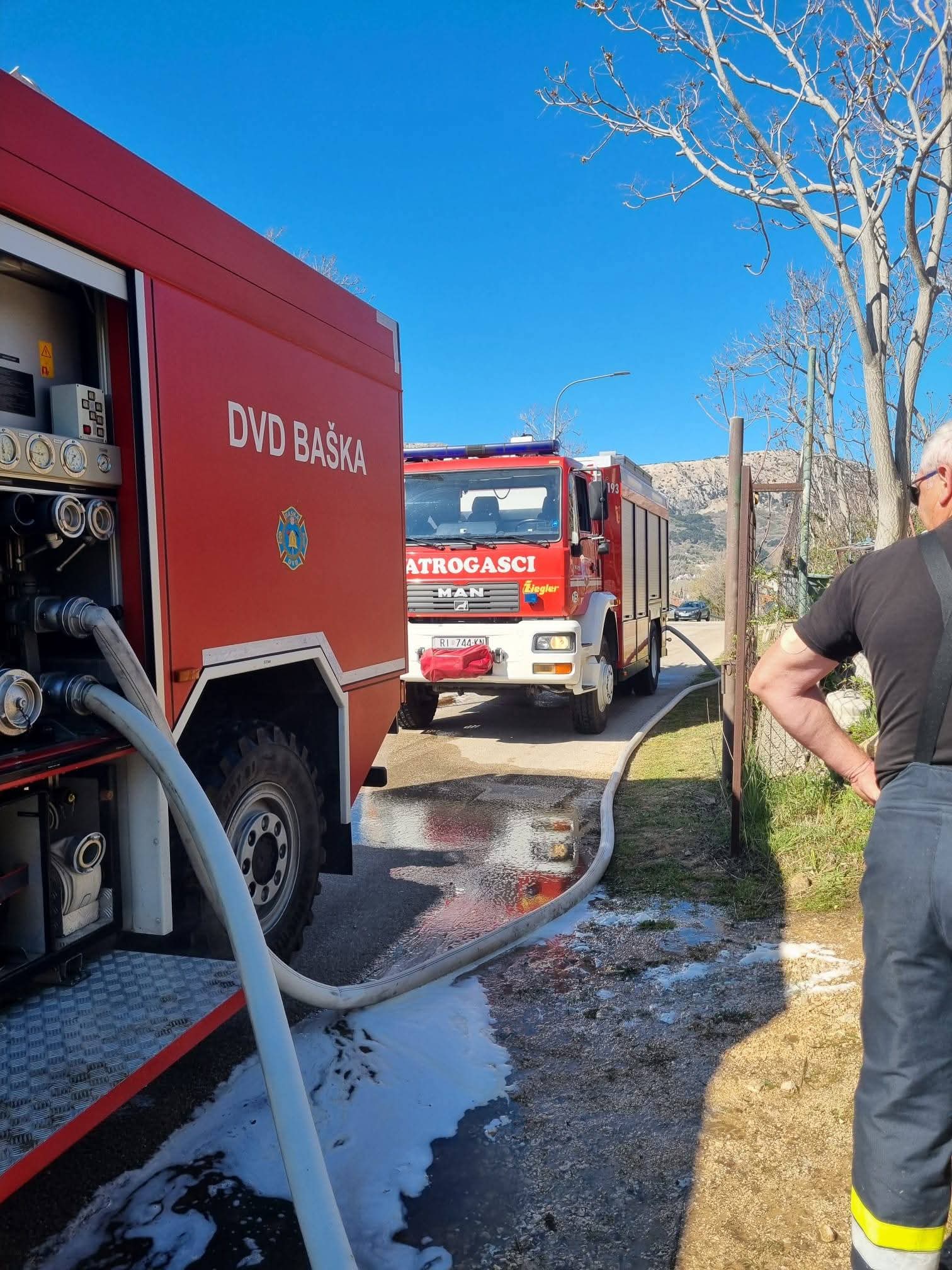 “Po dolasku naše postrojbe požar je već bio lokaliziran, nakon čega vršimo opskrbu vodom vozila DVD-a Baška te vršimo dogašivanje.