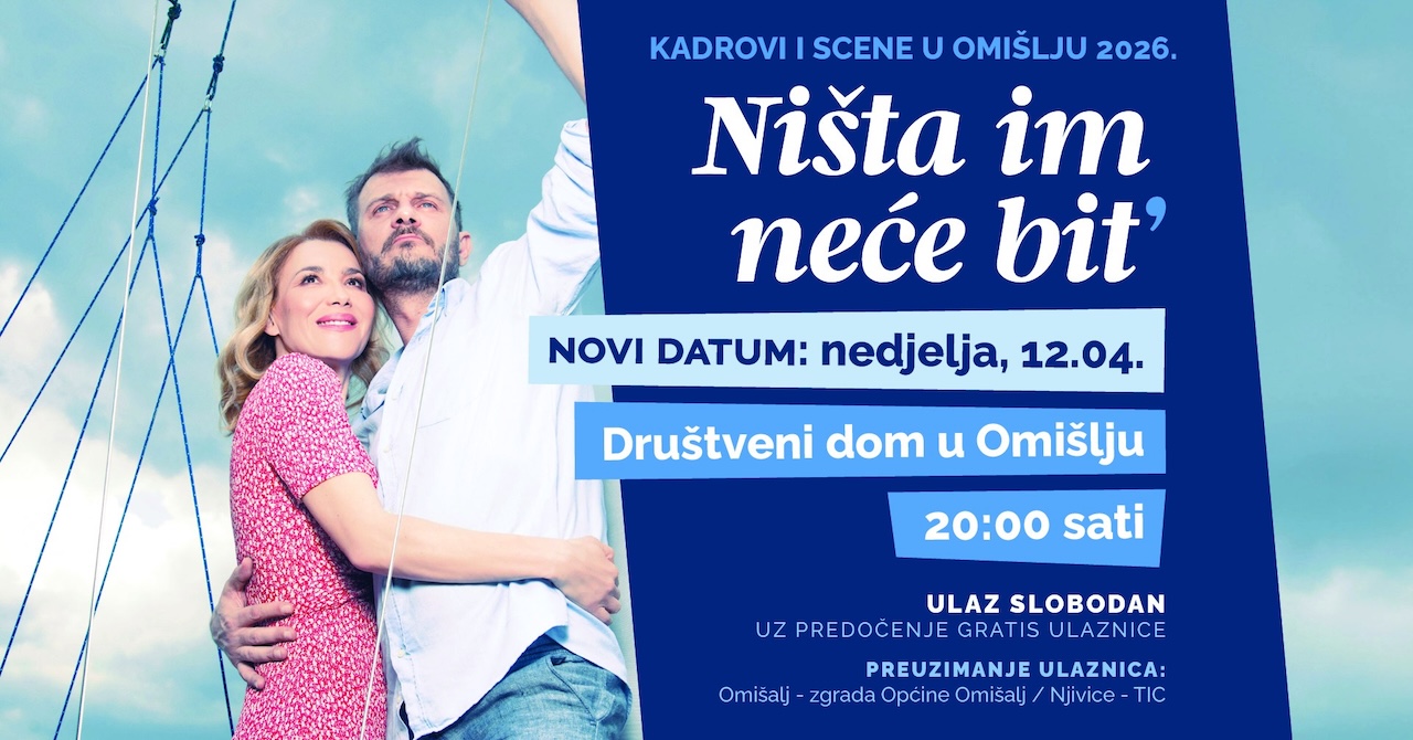 U nedjelju, 12.04. u 20 sati u Društvenom domu u Omišlju gostuje kazališna predstava “Ništa im neće bit“, kazališta Moruzgva.