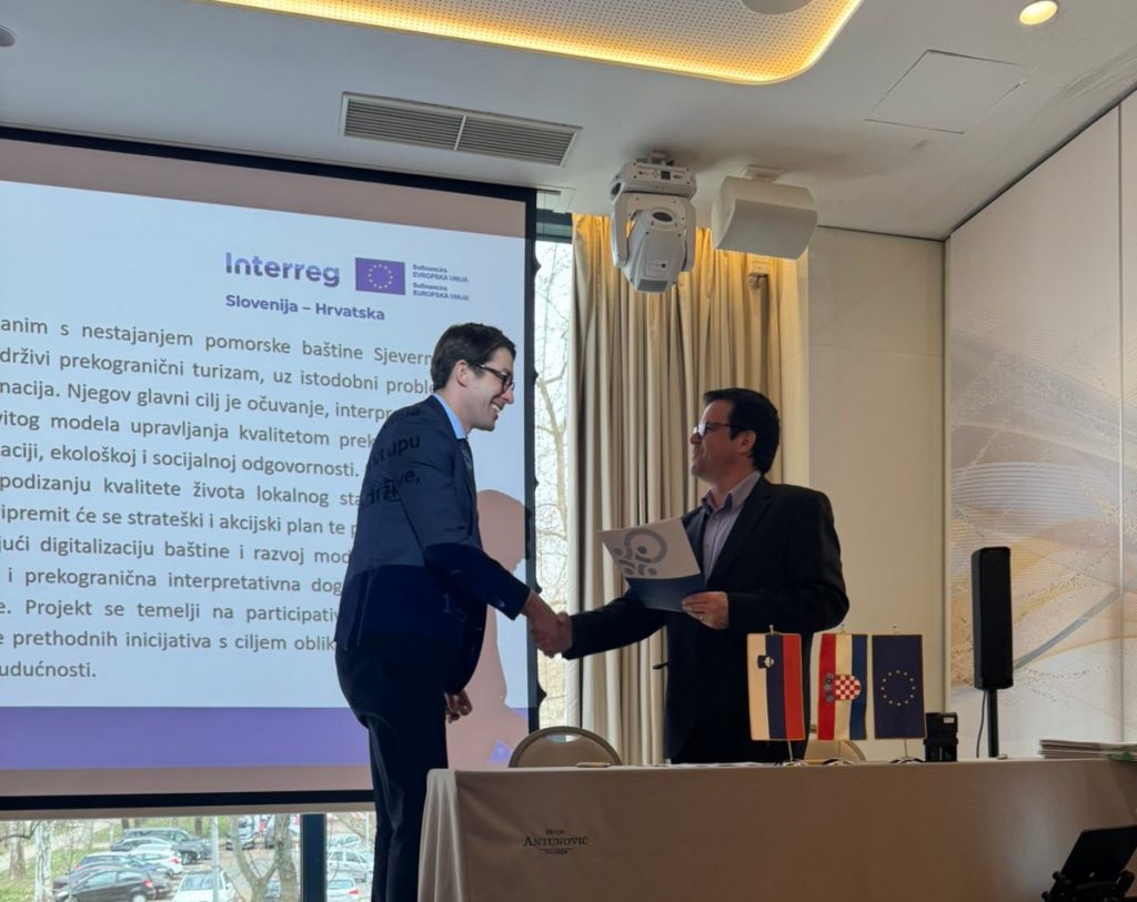 U hotelu Antunović u Zagrebu, održano je svečano potpisivanje ugovora za standardne projekte u okviru Interreg Programa Slovenija-Hrvatska 2021.-2027. Primorsko-goranskoj županiji, kao vodećem partneru, odobren je projekt „Mala 3ARKA – očuvanje jedinstvene pomorske baštine sjevernog Jadrana kroz kvalitativnu nadogradnju i pametnu digitalizaciju održive prekogranične kulturno-turističke destinacije pomorskog turizma Mala 3ARKA“. Svečanom potpisivanju ugovora prisustvovali su u ime Primorsko-goranske županije zamjenik župana Robert Matić i pročelnica Alessandra Ban.