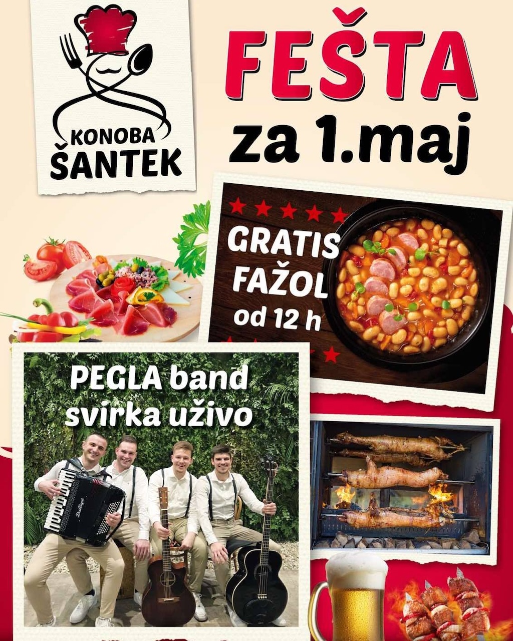 01.05. u Rasopasnu u konobi Šantek od 12 sati dijeli se gratis fažol, a uživo svira Pegla band.