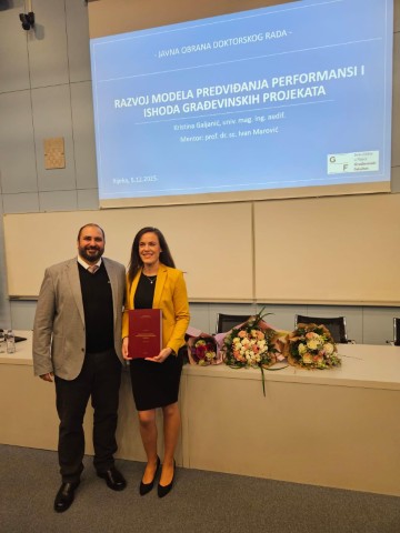 Puntarka Kristina Galjanić obranila doktorski rad na temu “Razvoj modela predviđanja performansi i ishoda građevinskih projekata”