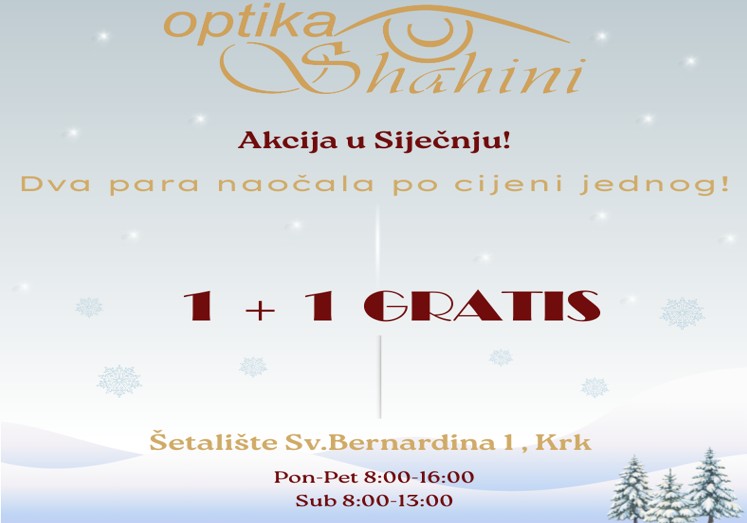 Siječanj u znaku darivanja u krčkoj Optici Shahini: kupite jedne naočale, druge dobivate na dar!