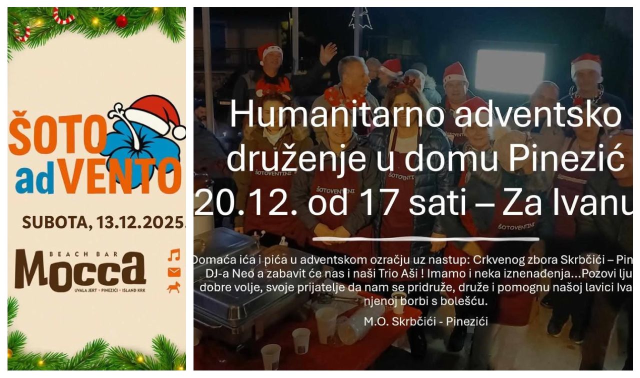 Humanitarno adventsko druženje u Domu Pinezić održat će se 20. prosinca od 17 sati, uz domaća ića i pića i nastupe Crkvenog zbora Skrbčići – Pinezići, DJ Nea i Trija Aši – ali i neka iznenađenja.