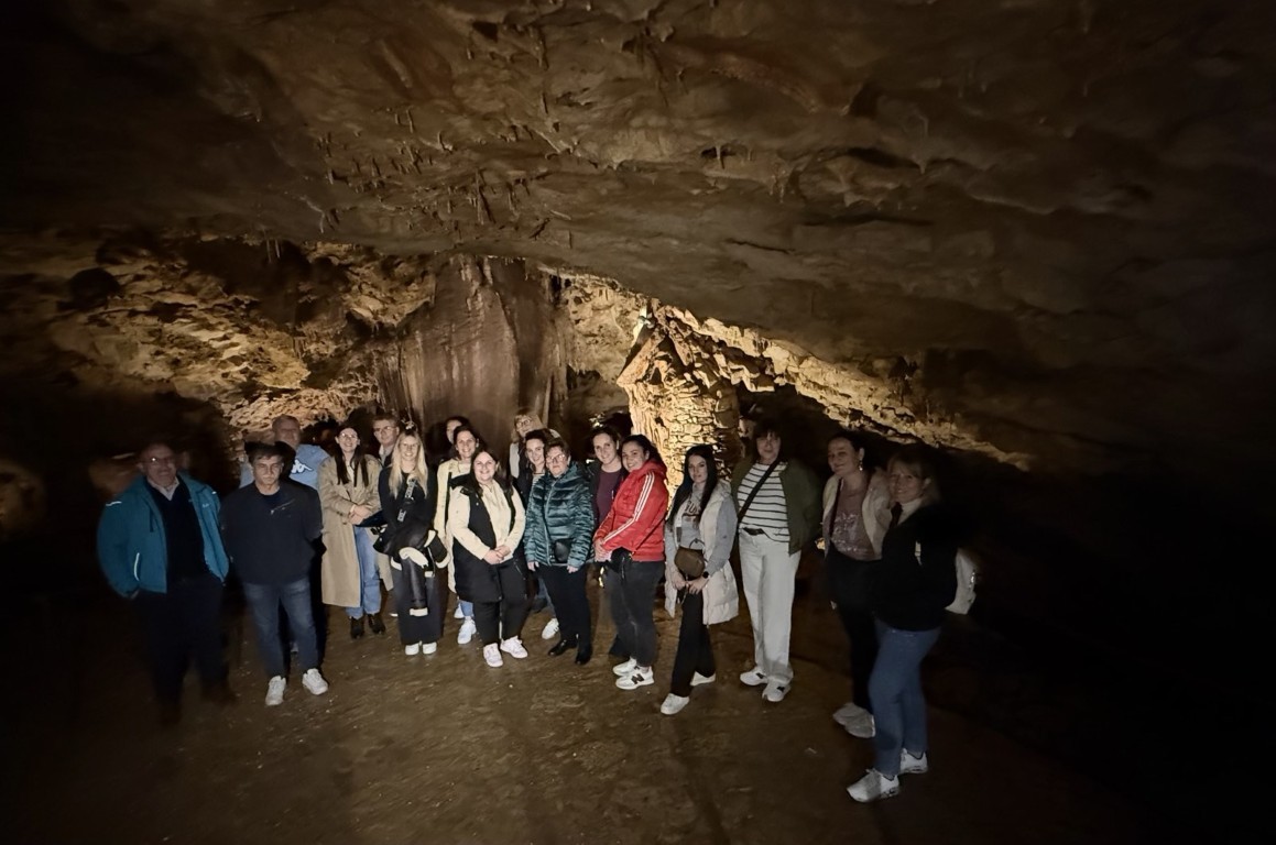 Putovanje se nastavilo prema Žminju, gdje su učitelji posjetili poznatu špilju Feštinsko kraljevstvo. Unutrašnjost špilje oduševila je sve prisutne svojom prirodnom ljepotom i bogatstvom siga među kojima se posebno ističu „Čarobnjakov šešir“, „Kula babilonska“ i impresivna „šišmiševa krila“. Posebna zanimljivost je korijen vinove loze koji dopire do špiljskog dna i crpi vodu iz podzemlja. Imali su priliku vidjeti i nekoliko šišmiša.