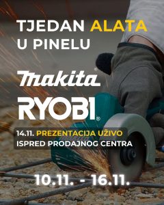 Trenutno je u tijeku Tjedan alata, koji se održava od 10. do 16. studenog. Tjedan je posvećen vrhunskim brendovima Makita i Ryobi, uz odlične popuste na električne i akumulatorske alate. Popusti vrijede u poslovnicama i na webshopu: www.pinel-krk.hr