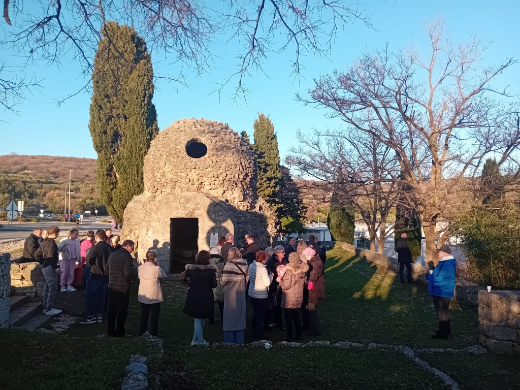Crkva, naizgled napuštena i gotovo ruševna, nalazi se na raskrižju putova. Povezuje vjernike iz Kornića, Veje (Krka), Vrbnika i Punta. Danas su na misi bili vjernici iz spomenutih mjesta, a zasigurno najbrojniji iz Kornića. Za ovu svečanu euharistiju crkva je bila posebno osvijetljena lučicama. Dan je bio predivan i sunčan.