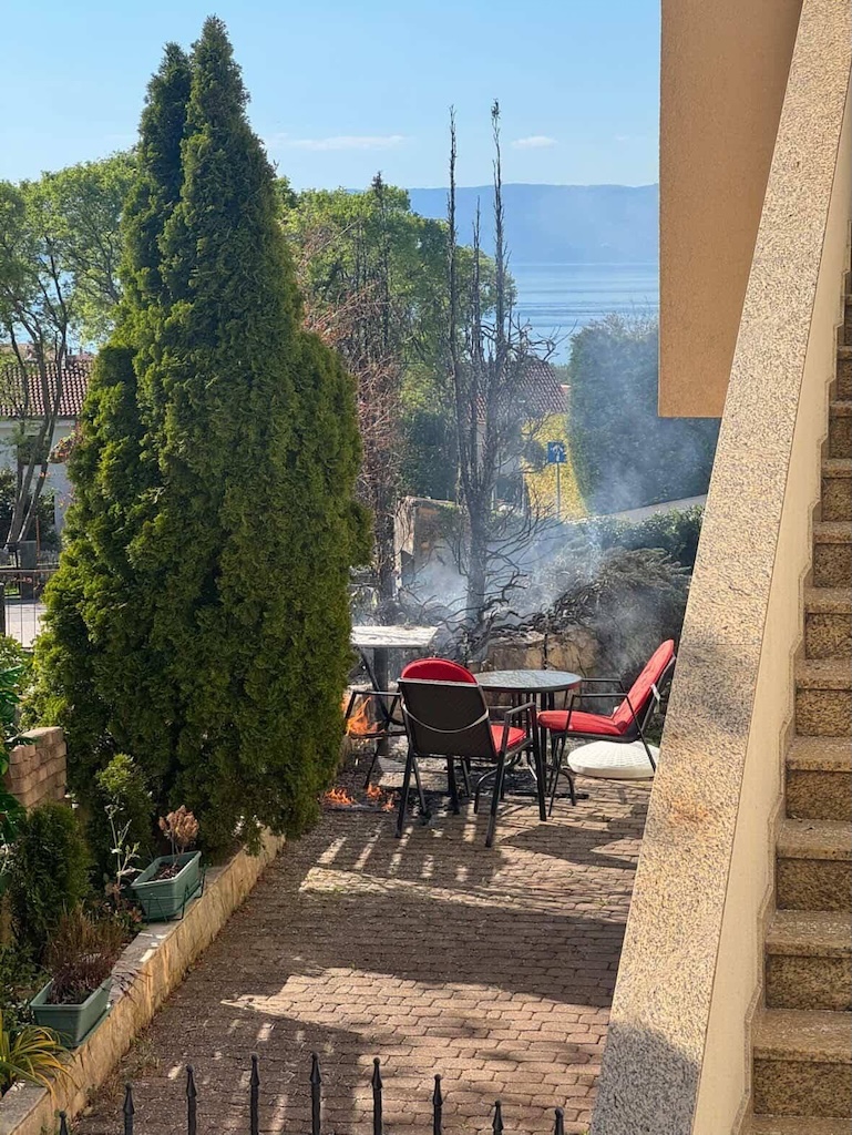 Kako su izvijestili vatrogasci JVP Grada Krka, prilikom kontroliranog spaljivanja korova došlo je do širenja vatre na krov šupe, nakon čega se požar proširio na stol i stolice na terasi susjednog objekta.