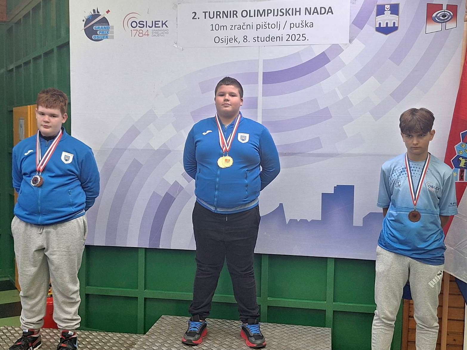 David Barbiš (pištolj) krenuo je furiozno s fantastičnim serijama (92, 96, 96…), no kraj meča donio je pad koncentracije – ipak, iskustvo koje je stekao bit će dragocjeno za daljnji razvoj. Unatoč oscilacijama, David je osvojio čak 4 medalje: 1. mjesto kod mlađih kadeta, 1. mjesto kod kadeta, 2. mjesto kod mlađih juniora te 2. mjesto kod juniora